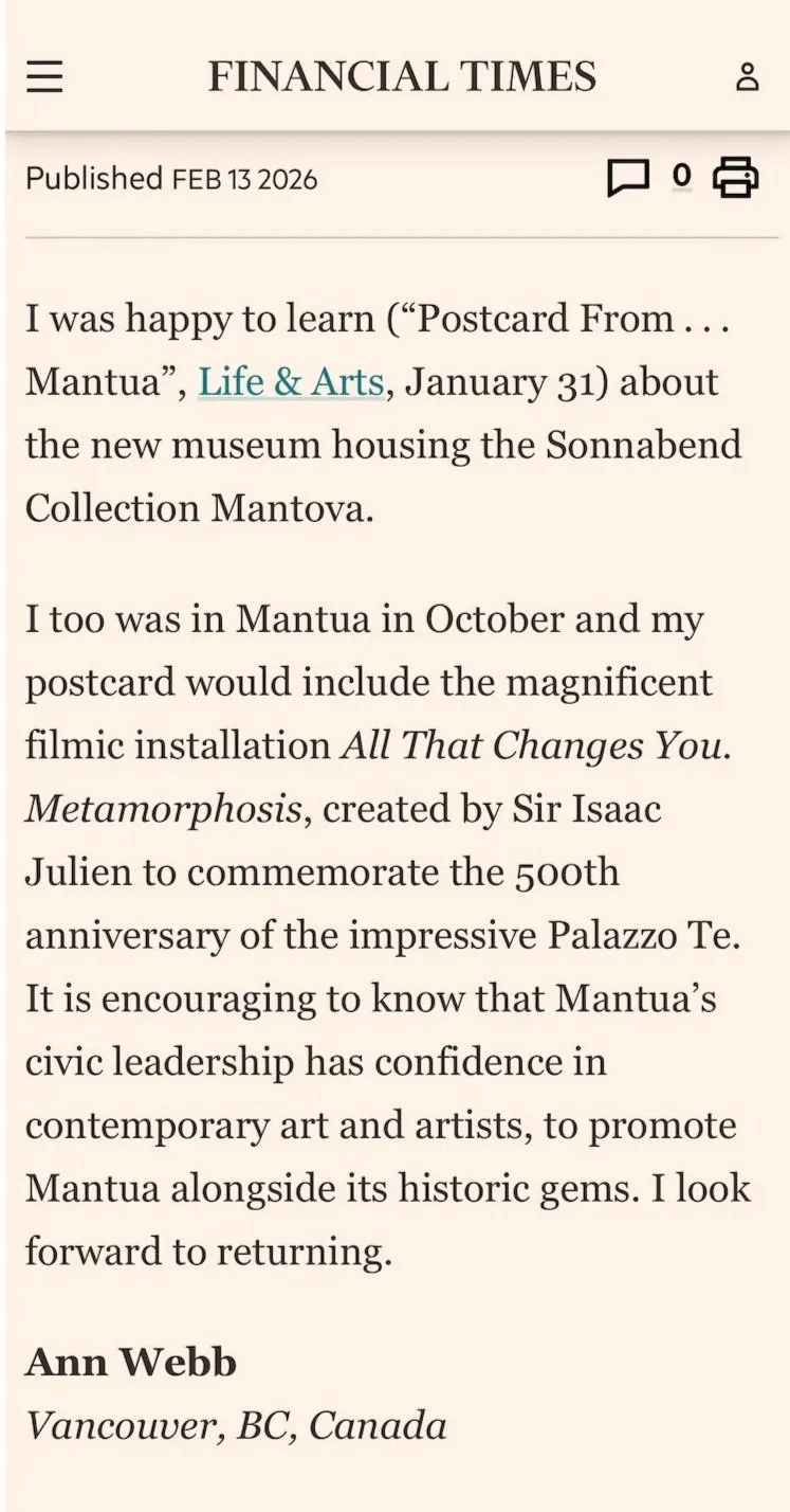 Letter to the Editor, published in The Financial Times, about an Exhibition by Artist Isaac Julien.